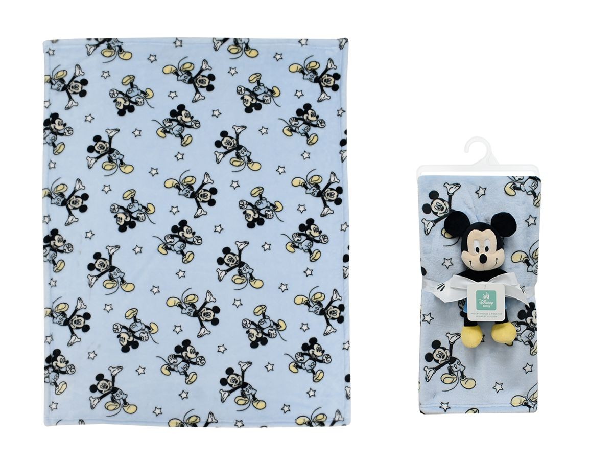 Λούτρινο Disney Home Σετ 2 Τεμ. bebe Mickey 29 Ύψος 25 cm & Κουβέρτα Coral Fleece 75X100 cm Wathet Blue 100% Polyester