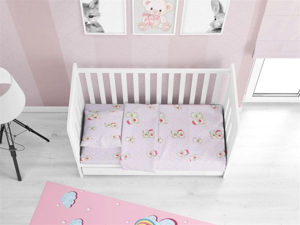 ΠΑΠΛΩΜΑ ΕΜΠΡΙΜΕ bebe Two Lovely Bears 65 120X160 Lila Cotton 100%