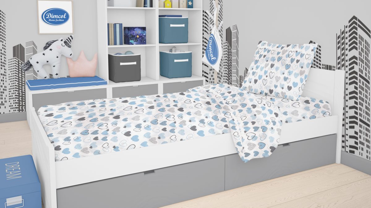 ΣΕΝΤΟΝΙΑ ΕΜΠΡΙΜΕ ΣΕΤ 2 τεμ kids Hearts 08 160X240 Blue Cotton 100%
