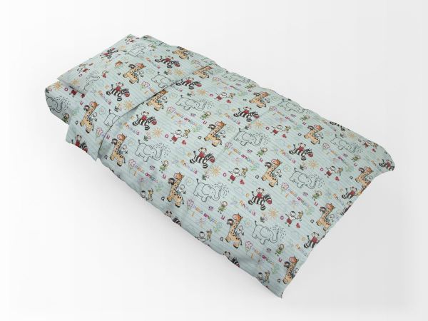 Σεντόνια Μονά Flat 2 τεμ.160Χ240,Μαξιλαροθήκη 1 τεμ.50Χ70-Υφασμα 100 % βαμβάκι ποιοτητα Φανέλλα TC 144 Εμπριμέ με χαρούμενα χρώματα και παραστάσεις-Συσκευασία μονόπτυχο Polybag